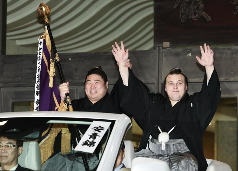 ところで大関安青錦が優勝し、パレードの旗手にはじめは目を疑いましたが、小結若元春でしたよね。