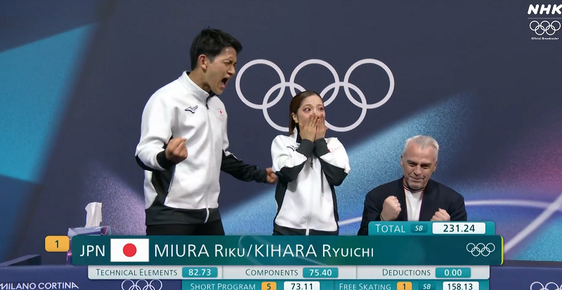 失意のショートプログラム5位から1日、りくりゅうペアのフリー演技。