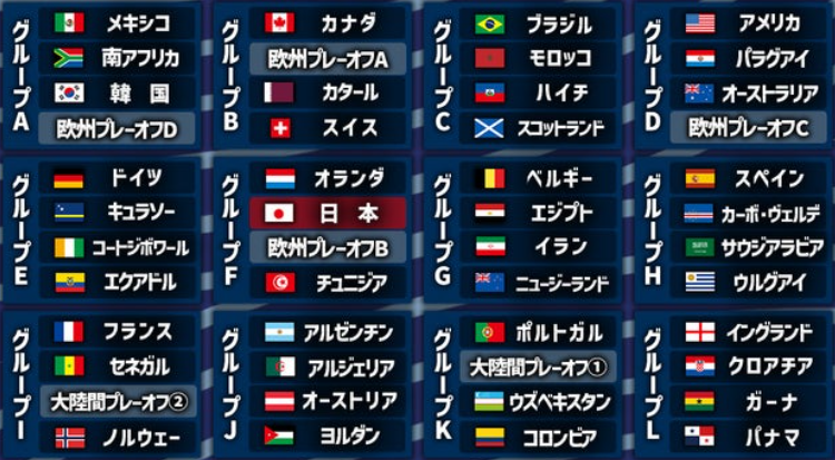 6月に開催する北中米W杯グループF組に入った日本の相手は、
